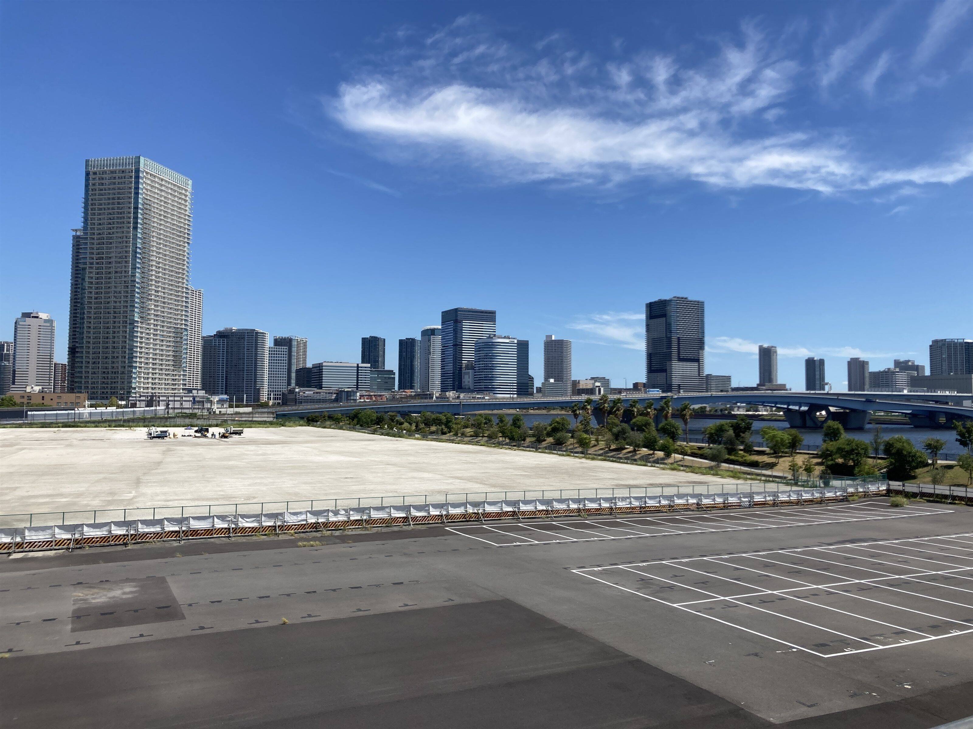晴海ふ頭公園の近くには、かつて東京の港を支えた古い倉庫群が立ち並んでいました。しかし、再開発の波とともに、それらは一つ、また一つと姿を消し、今は広大な更地が広がっています。
